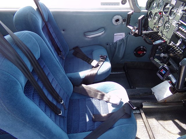 Cloth Seats with Blue Vinyl Side Panels and Blue Carpeting.
