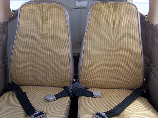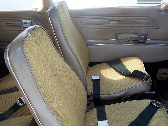 Vinyl Seats with Gold Fabric Inserts. Tan Vinyl Side Panels and